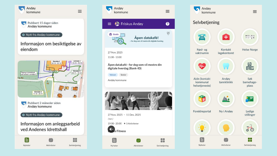 Andøy kommune er nå på innbyggerappen Friskus kommune Med Friskus kommune-appen får innbyggerne i Andøy enkel tilgang til informasjon fra og om kommunen – helt gratis.
