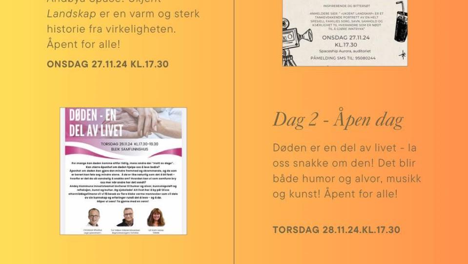 Temadager "Åpenhet om døden" ble godt mottatt Innsatsteamet i Andøy kommune arrangerte i fjor høst temadager rundt åpenhet om døden. Kreftkoordinator Tone Marie Norheim og teamleder ved innsatstea...