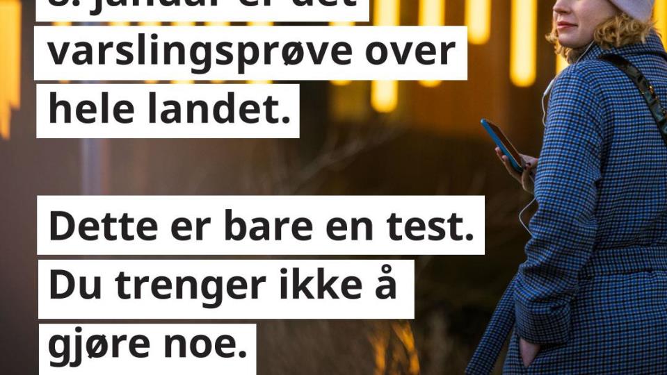 Nasjonal varslingsprøve onsdag 8. januar klokken 12 Politiet vil teste Nødvarsel på mobil i hele landet og Svalbard, samtidig som Sivilforsvaret tester varslingsanleggene i hele landet.