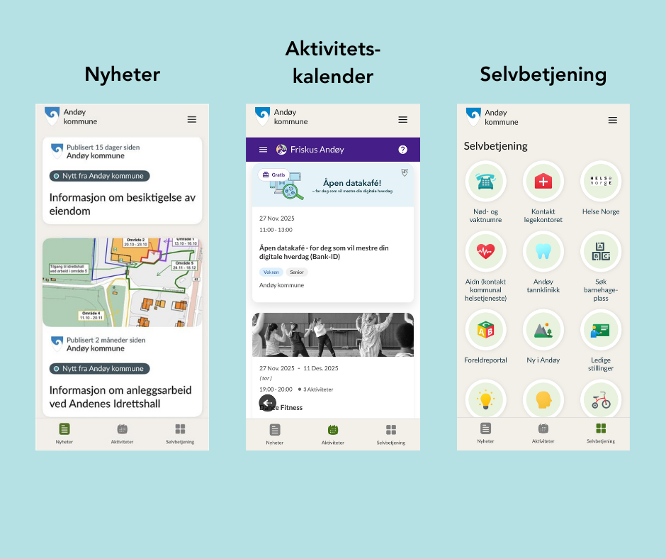 Med Friskus kommune-appen får innbyggerne i Andøy enkel tilgang til informasjon fra og om kommunen – helt gratis.