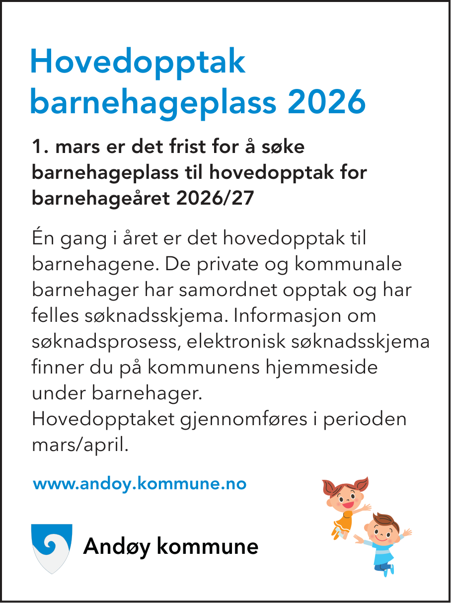 Husk frist for hovedopptaket til barnehager 1. mars Publisert 10.02.2026 16:18 Sist endret 10.02.2026 16:18