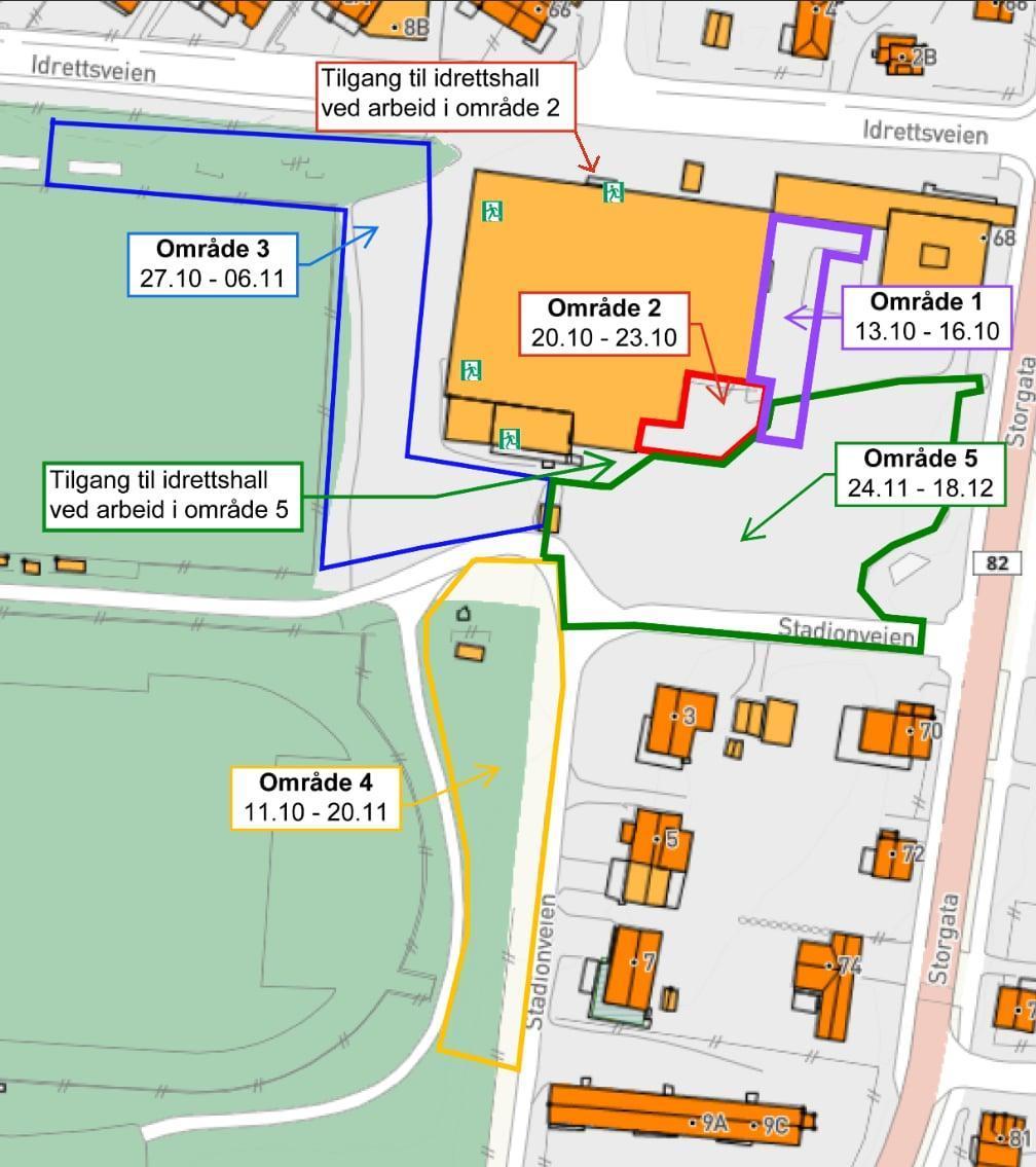 Dette betyr at tilgangen til området rundt Andenes Idrettshall og parkeringsplassen vil bli begrenset i perioder. Kommunen vil informere løpende om eventuelle endringer.