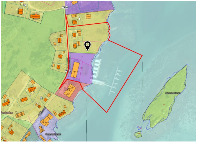 Planområdet på Risøyhamn, omfatter området vist på kartutsnittet nedenfor: